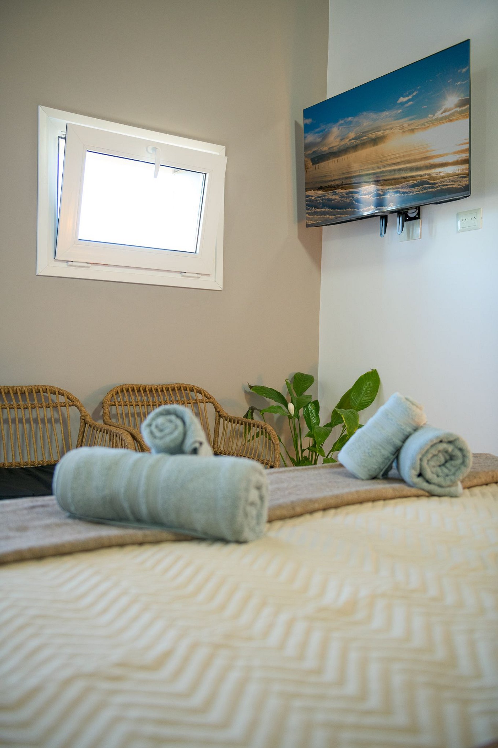 Moderno departamento a estrenar . Equipado con todo lo necesario para la estadía . Cama king , que se puede separar en dos individuales si se solicita con anticipación. También cuenta con una cama pequeña ( carro cama ) ideal para un niño/a . Cocina completa Baño con ducha Balcón con parrilla Se proveerá ropa de cama y toallas para la estadía