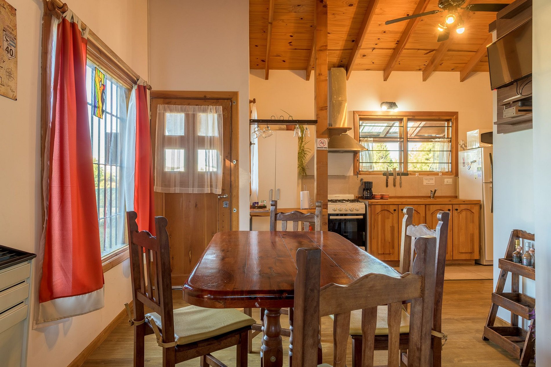 Linda cabana localizada a 20 minutos do centro de Bariloche e a 10 minutos da cidade de Dina Huapi. Grande jardim para desfrutar da estepe de Barilochense, com móveis de exterior e churrasqueira. A East Beach, no Lago Nahuel Huapi, fica a apenas 3 quarteirões de distância e é o lugar ideal para apreciar as maravilhosas vistas panorâmicas da cidade e suas majestosas montanhas. Wi-Fi ideal para aqueles que realizam trabalho remoto. Cabine totalmente aquecida nos quartos e na sala de estar, elementos de segurança (detector de monóxido de carbono, kit de primeiros socorros e extintor de incêndio). Lugar para estacionar dentro da propriedade, alarme de segurança na propriedade. Smart TV e jogos de tabuleiro.